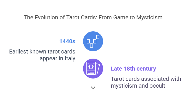 By the late 18th century, tarot cards began to be associated with mysticism and the occult. Figures such as Antoine Court de Gébelin and Jean-Baptiste Alliette (known as Etteilla) popularized the idea that tarot cards held esoteric knowledge and could be used for divination. This shift marked the transition of tarot from a mere game to a spiritual tool.